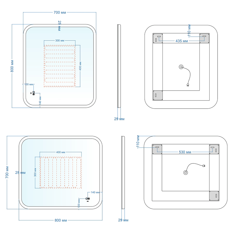 Зеркало с подсветкой AVS Байкал 80x70 см, антипар